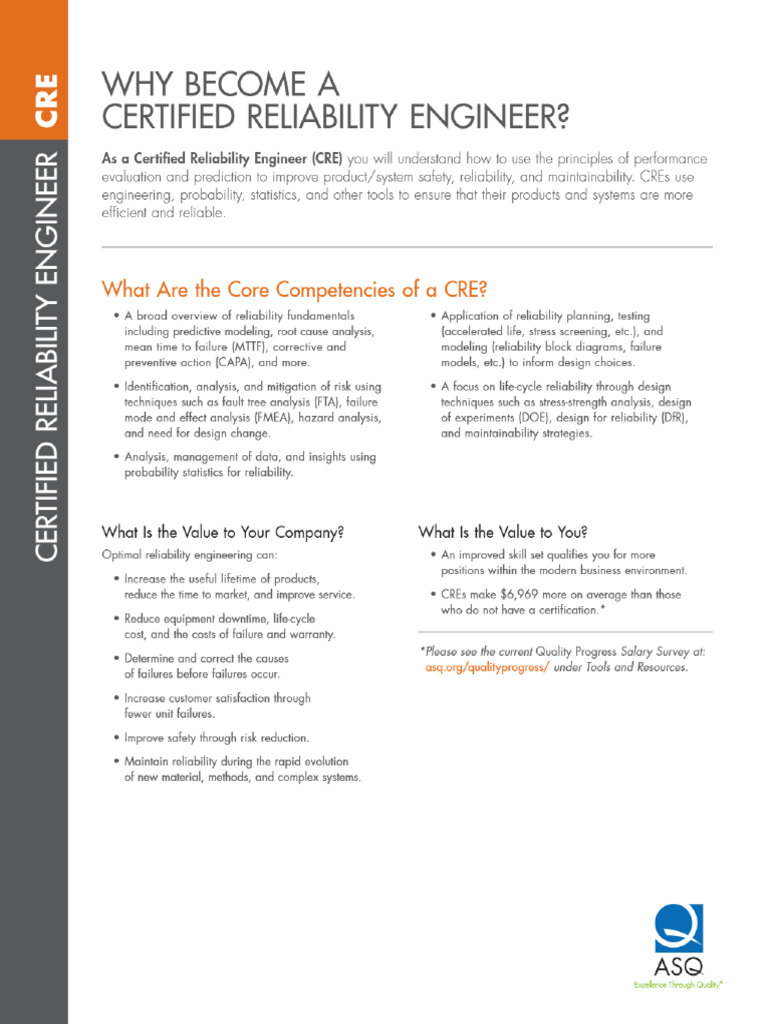 Certified Reliability Engineer (CRE) ASQ