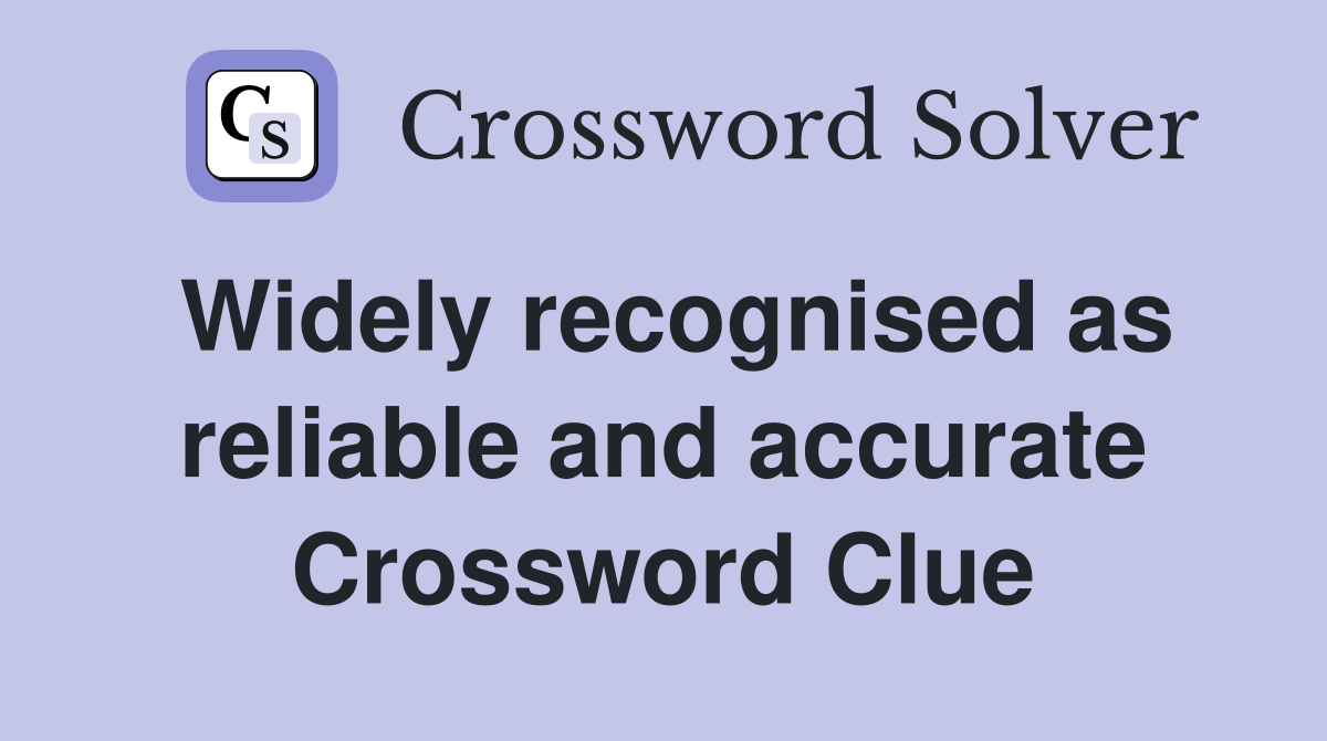 Widely recognised as reliable and accurate Crossword Clue Answers