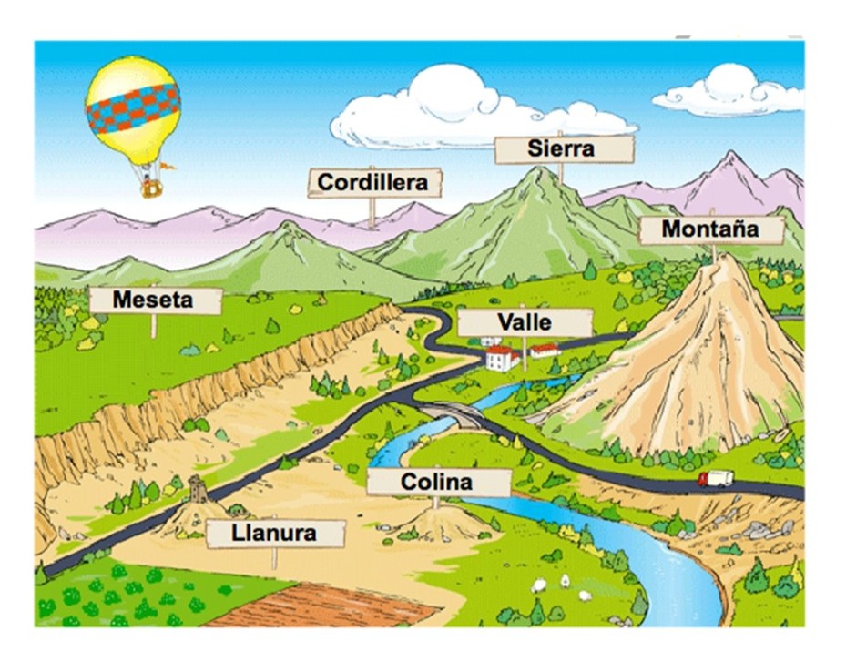 Los Tipos de Relieve Labelled diagram