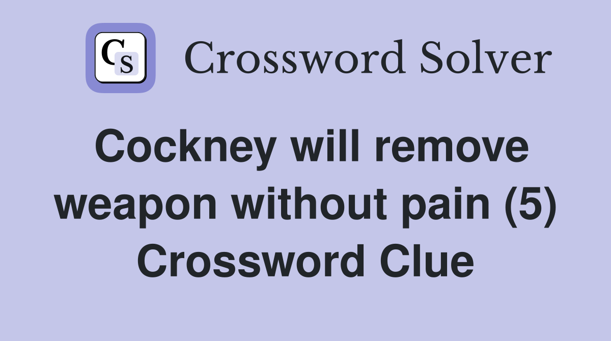 Cockney will remove weapon without pain (5) Crossword Clue Answers