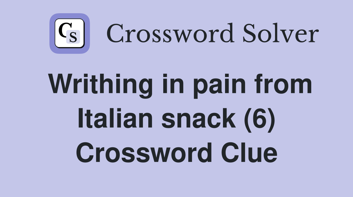 Writhing in pain from Italian snack (6) Crossword Clue Answers