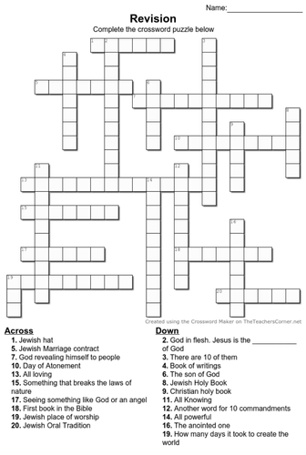 Christianity and Judaism Crossword GCSE Religious Studies Edexcel