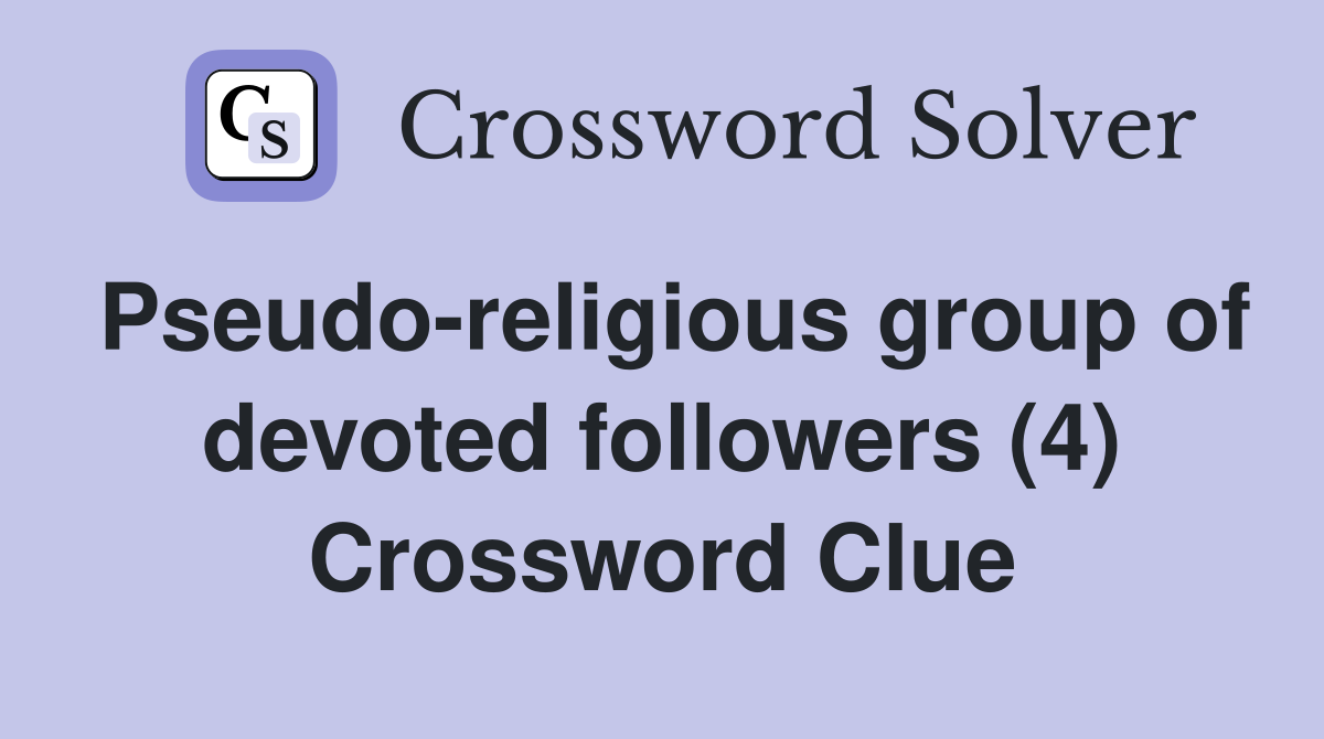 Pseudo religious group of devoted followers (4) Crossword Clue