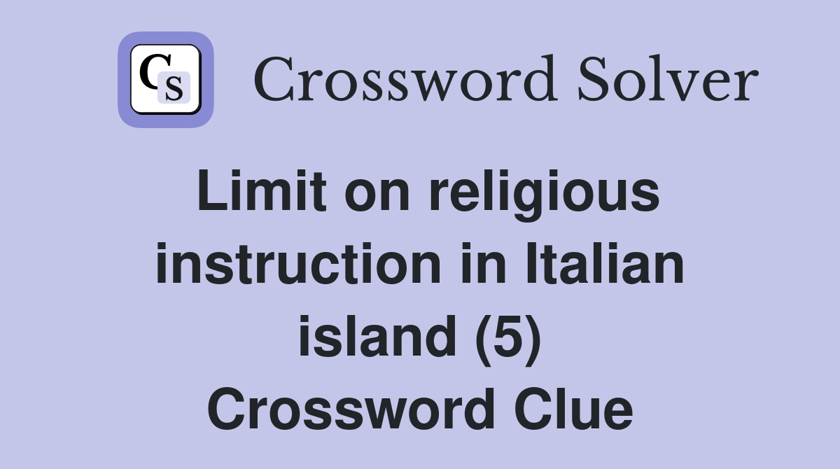 Limit on religious instruction in Italian island Crossword Clue Puzzle