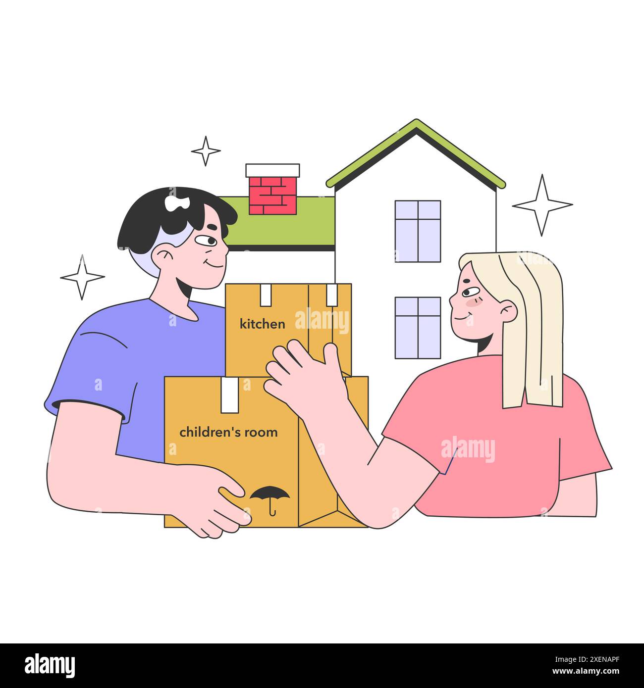 Relocation Service Moving Concept Delivery Freight Truck Illustration