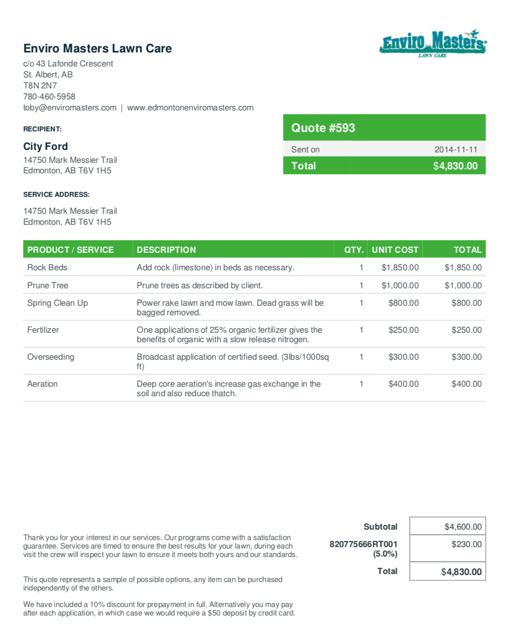 Lawn Care Estimate Form Invoice Template