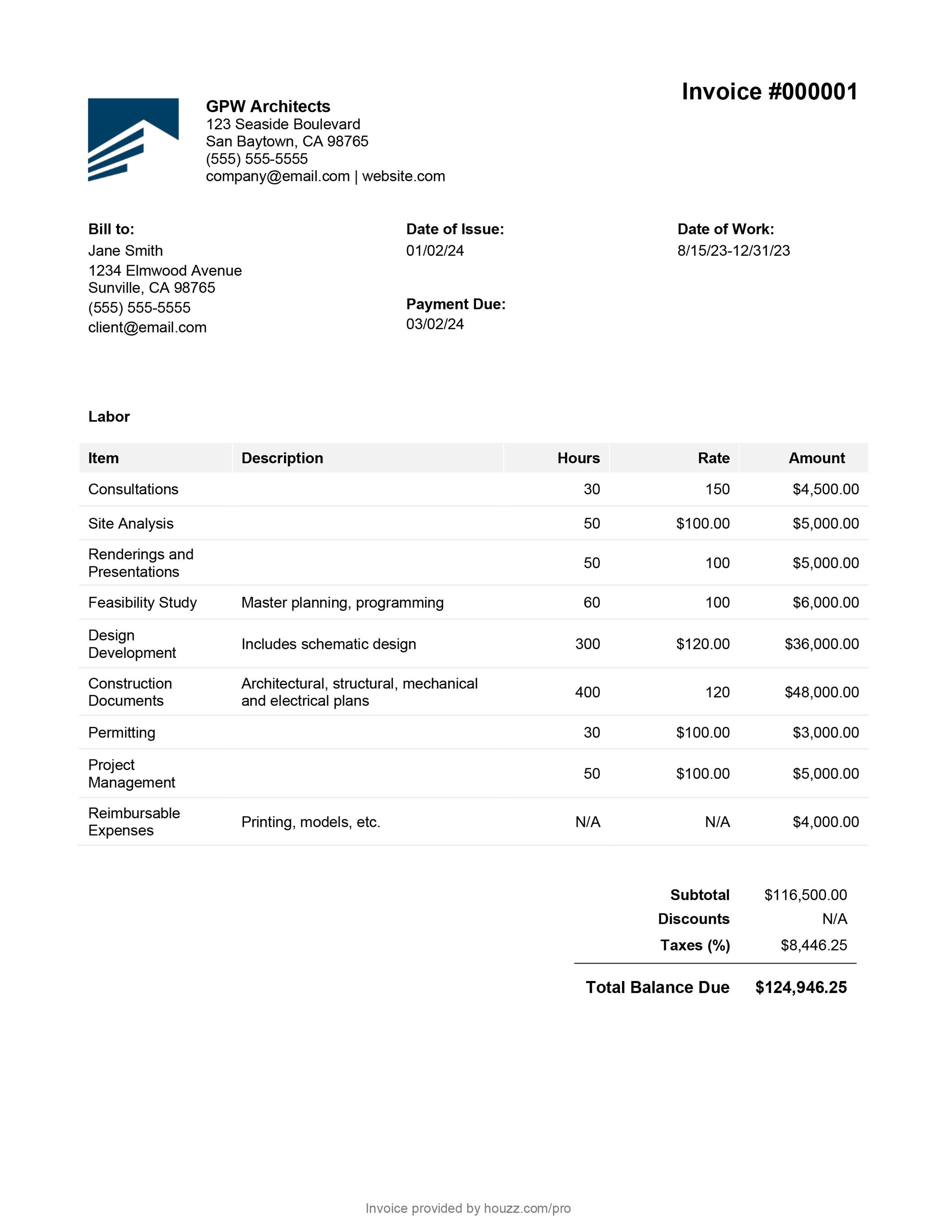 Free Architect s Invoice Template How To Guide Houzz Pro