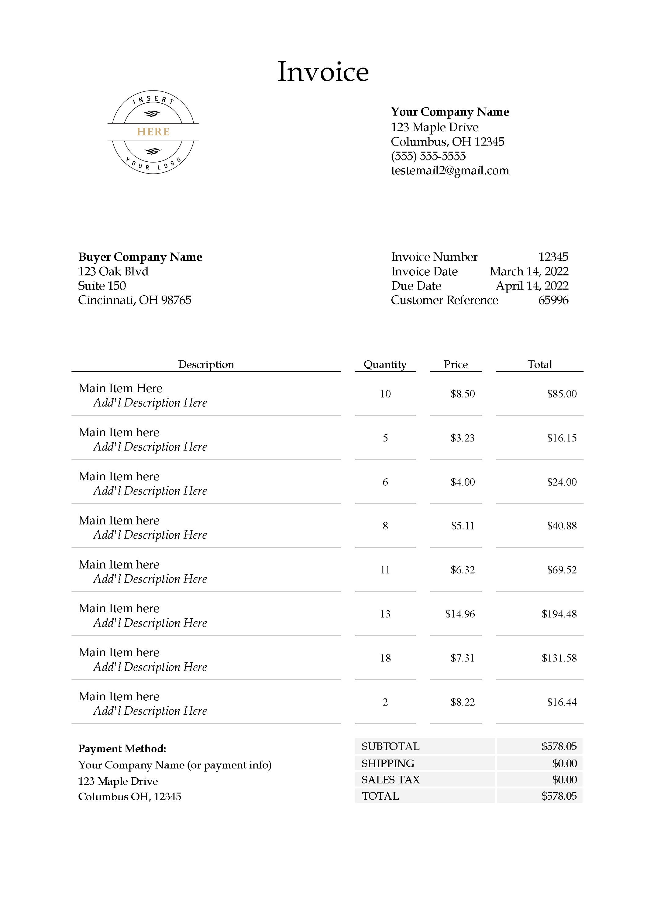 Amazon Invoice Template Word