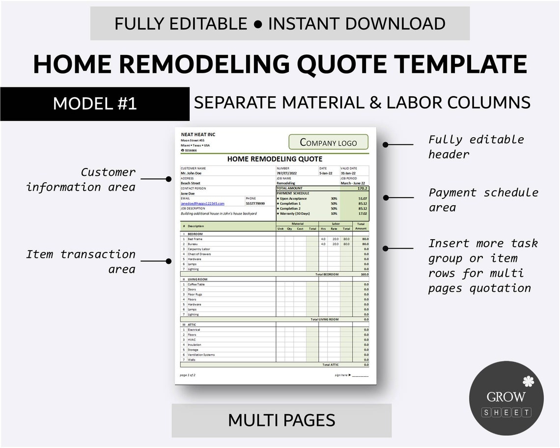 Home Remodeling Quote Template in Excel Google Sheets Download