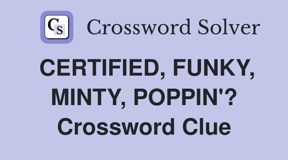CERTIFIED FUNKY MINTY POPPIN #39 ? Crossword Clue Answers Crossword