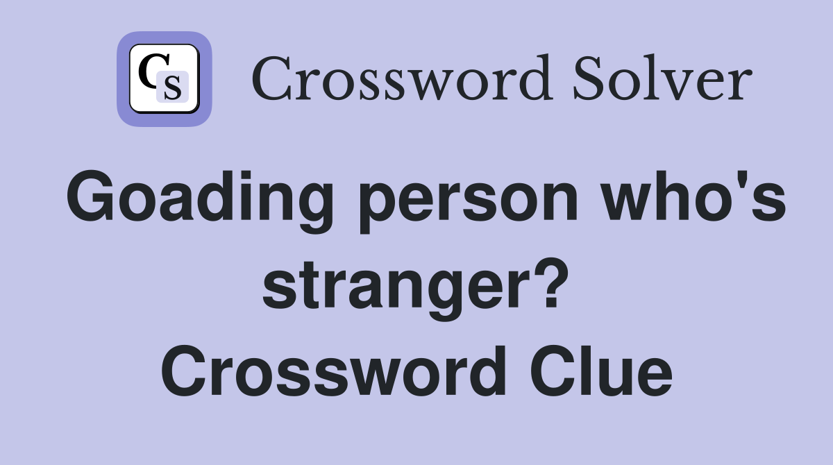 Goading person who s stranger? Crossword Clue Answers Crossword Solver