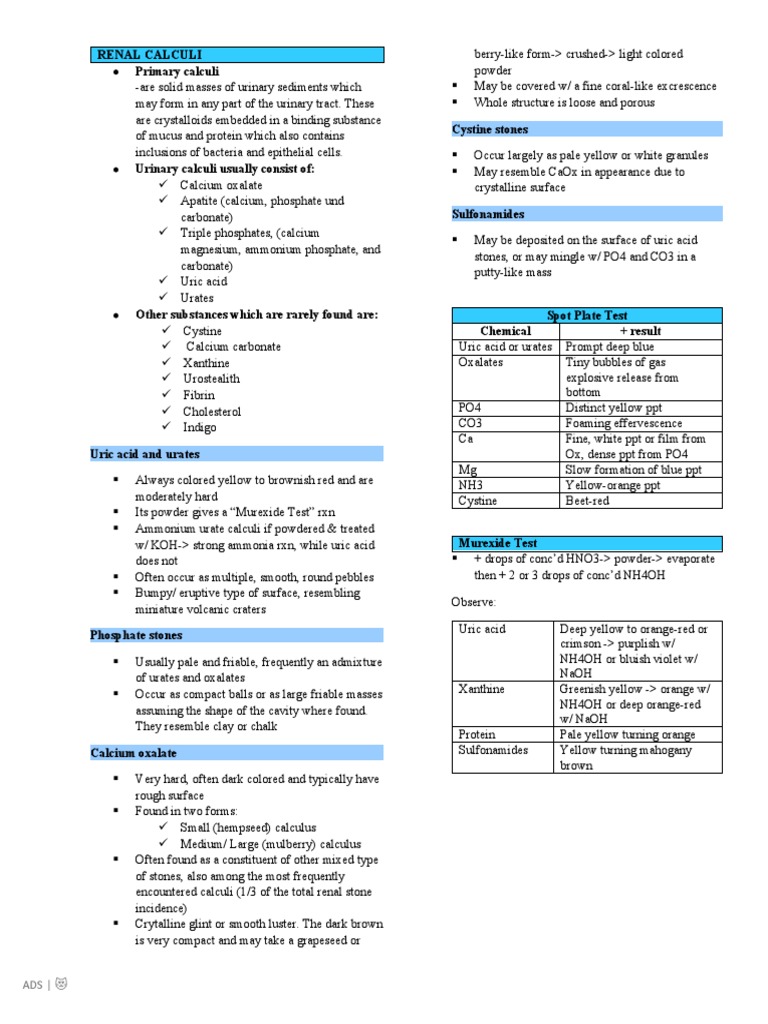 RENAL CALCULI EXAM STUDY GUIDE 2021 Exams Nursing Docsity