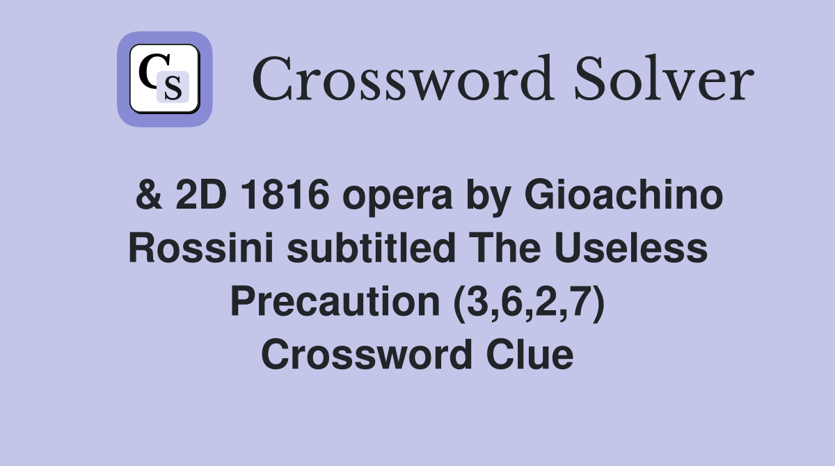 2D 1816 opera by Gioachino Rossini subtitled The Useless Precaution