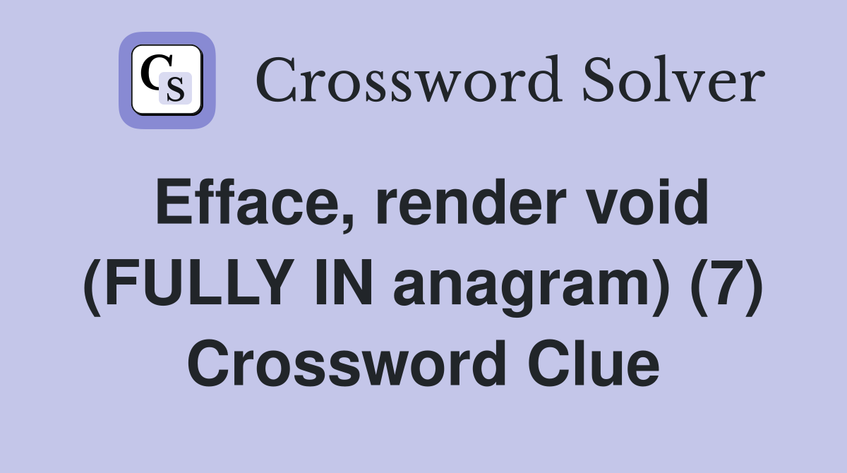 Efface render void (FULLY IN anagram) (7) Crossword Clue Answers