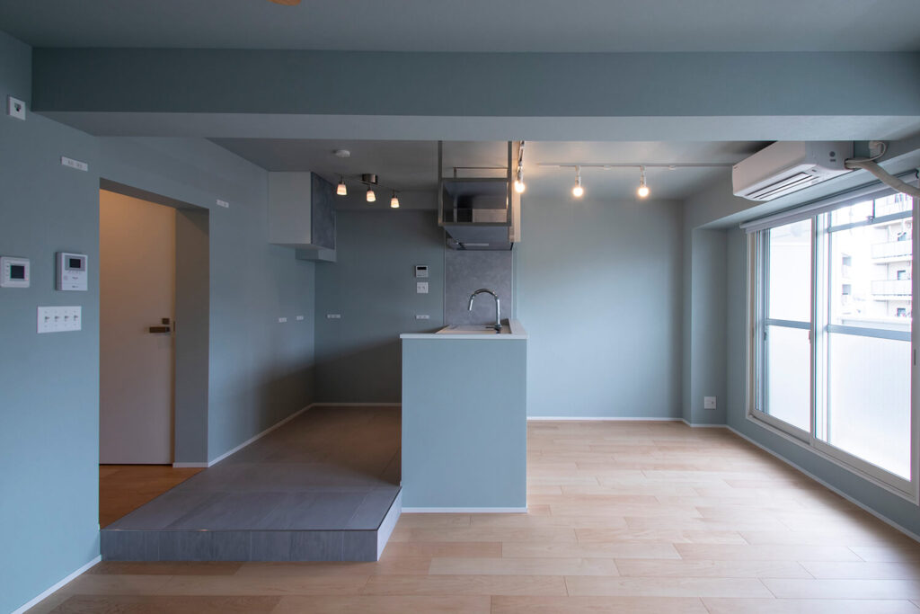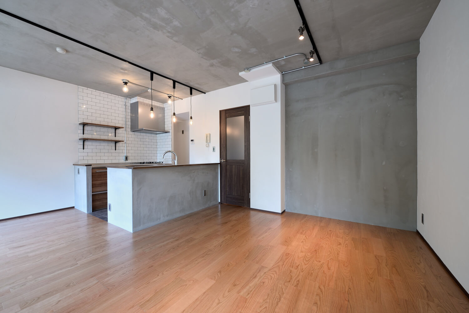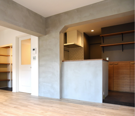 リノベーション事例:壁・天井もキッチンカウンターもモルタル仕上げの無骨でラフなマンションリノベーション リフォーム・リノベーションの