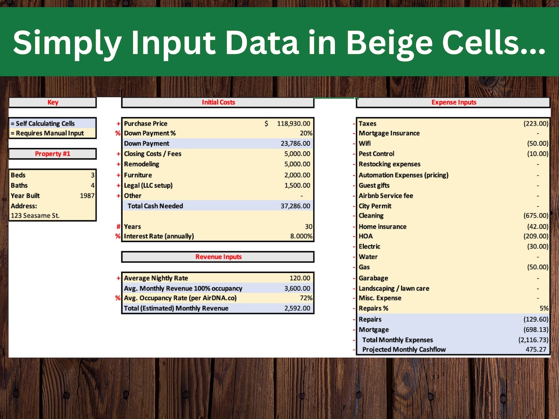 Airbnb Rental Analysis Excel Template: Short Term Rental Calculator Etsy