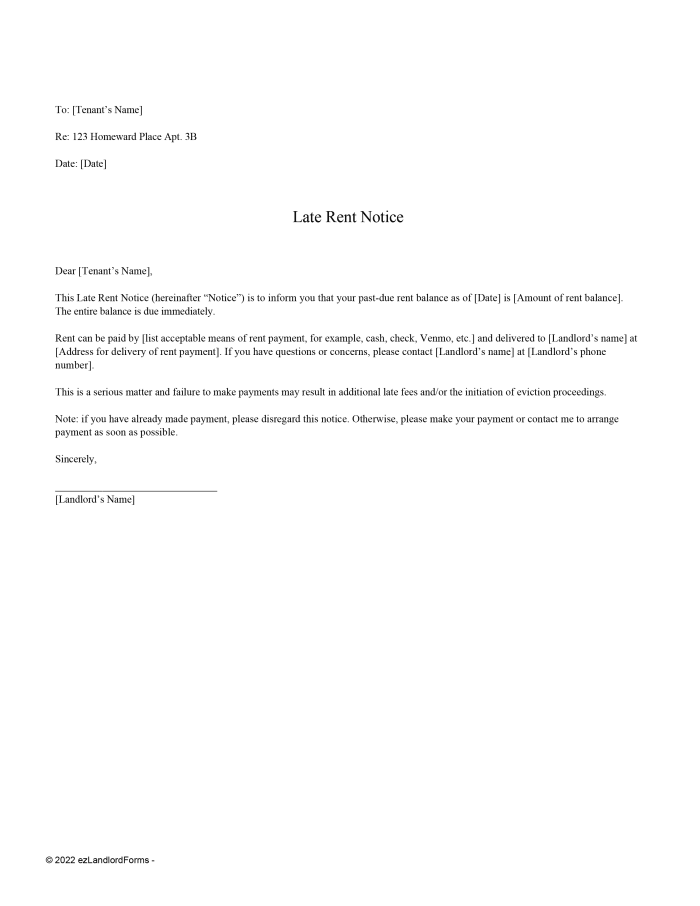 Late Rent / past due rent Notice Template Ready Made Office Templates