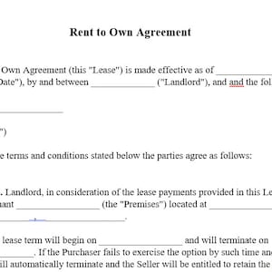 Rent to Own Agreement Lease to Own Option Agreement Lease Etsy UK