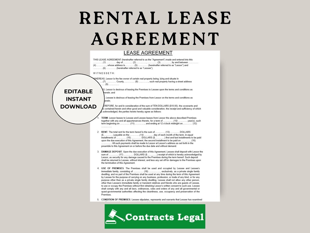 Rental Agreement Lease Contract Template Editable Landlord Etsy