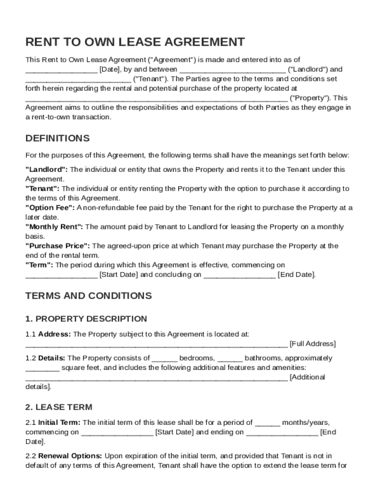 Rent to Own Agreement Template: Your Pathway to Homeownership PDF Agile