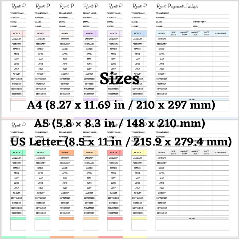 Editable Rent Tracker Personal Planner Monthly Rental Payment Rental