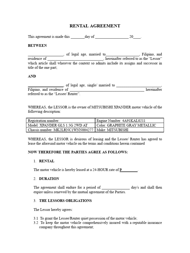 Rental Agreement: Page 1 of 1 PDF Lease Urban