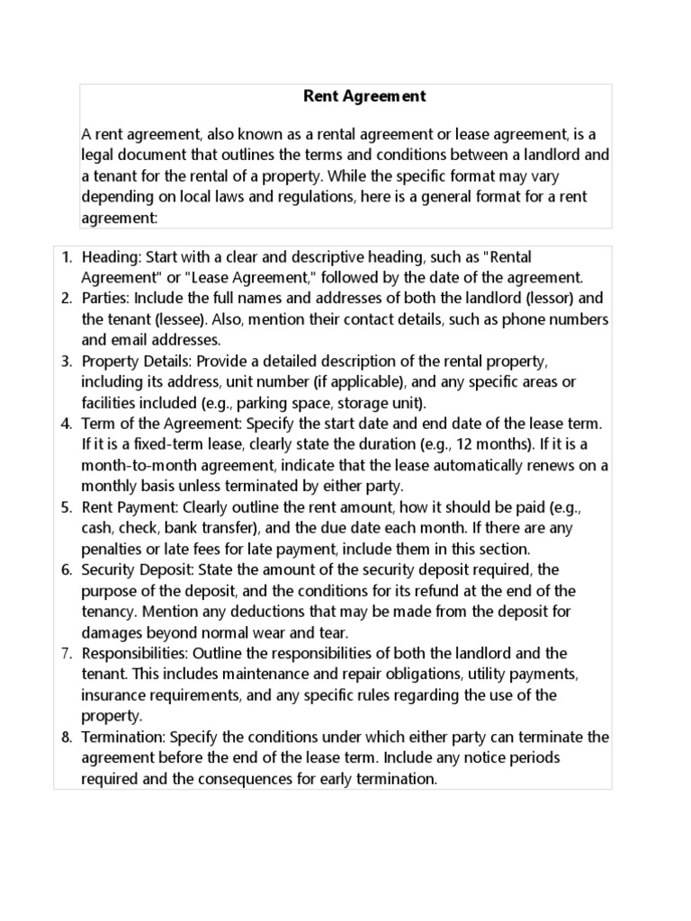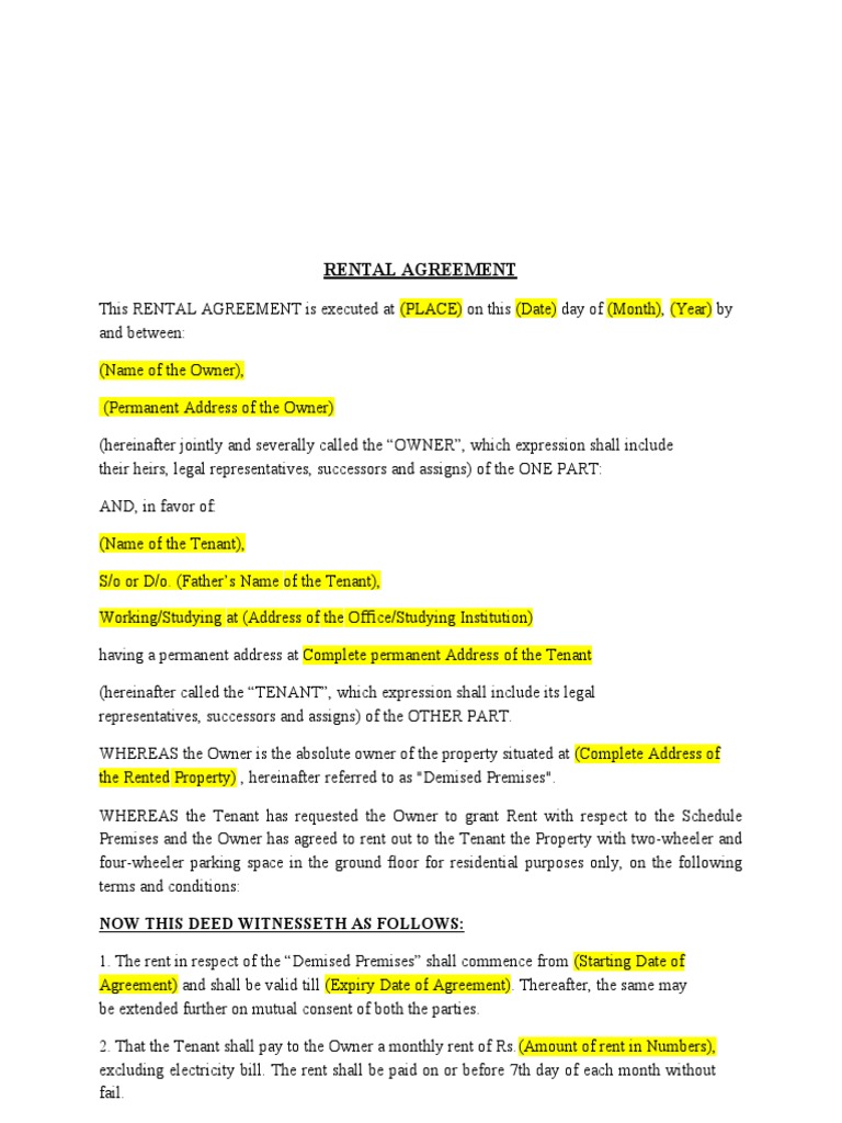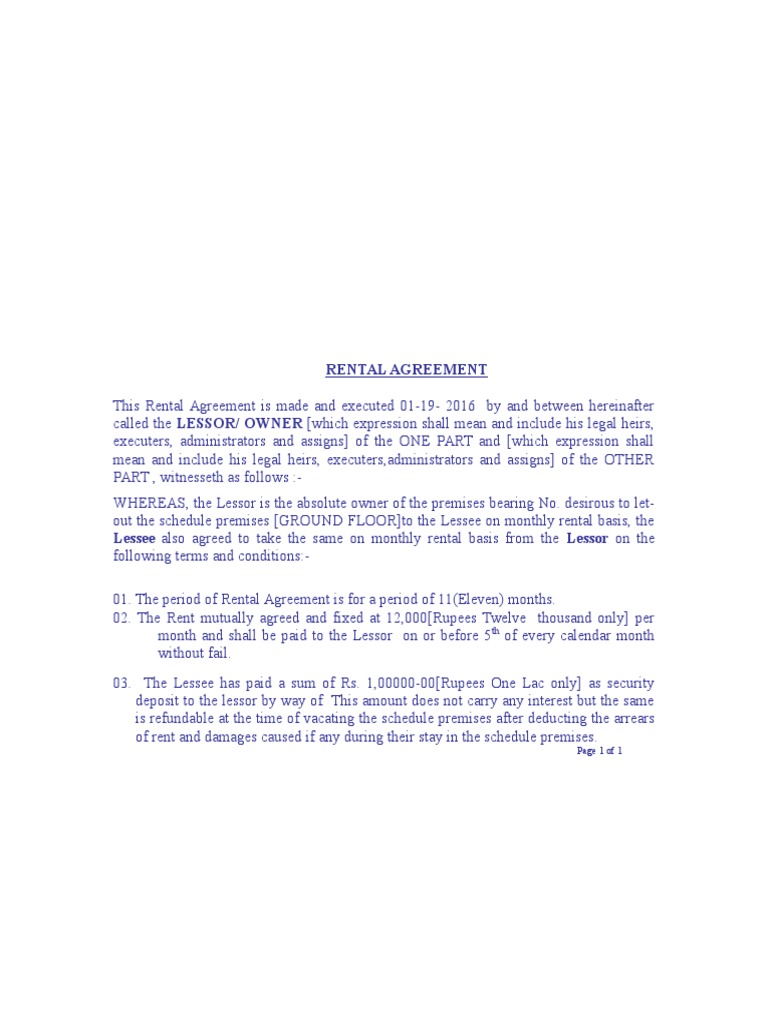Rent Agreement PDF Leasehold Estate Renting