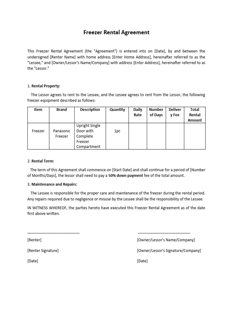 Rental Agreement Contract Template
