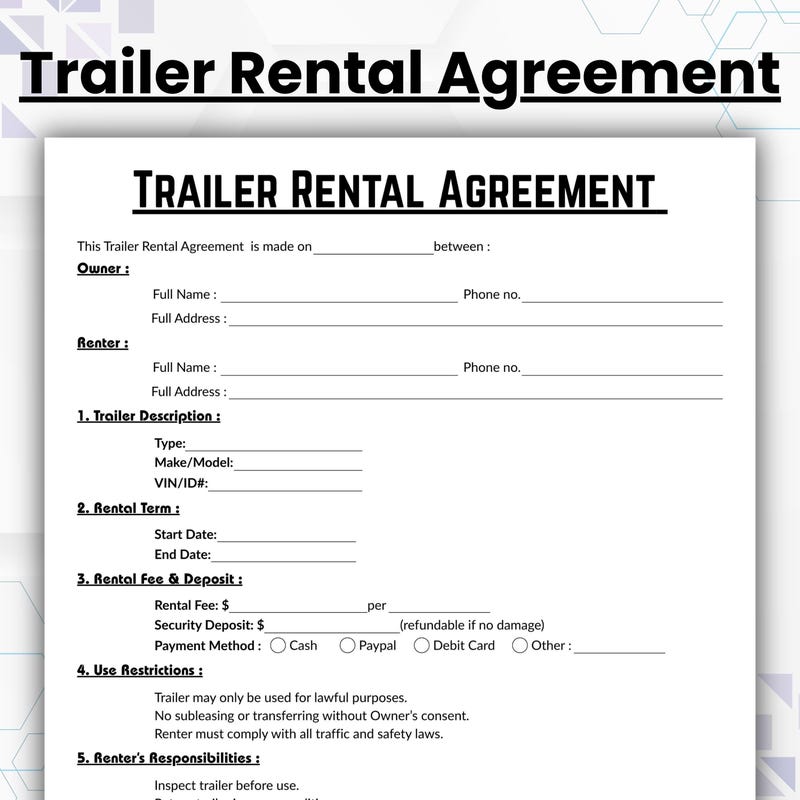 Lease on Truck Agreement Etsy UK