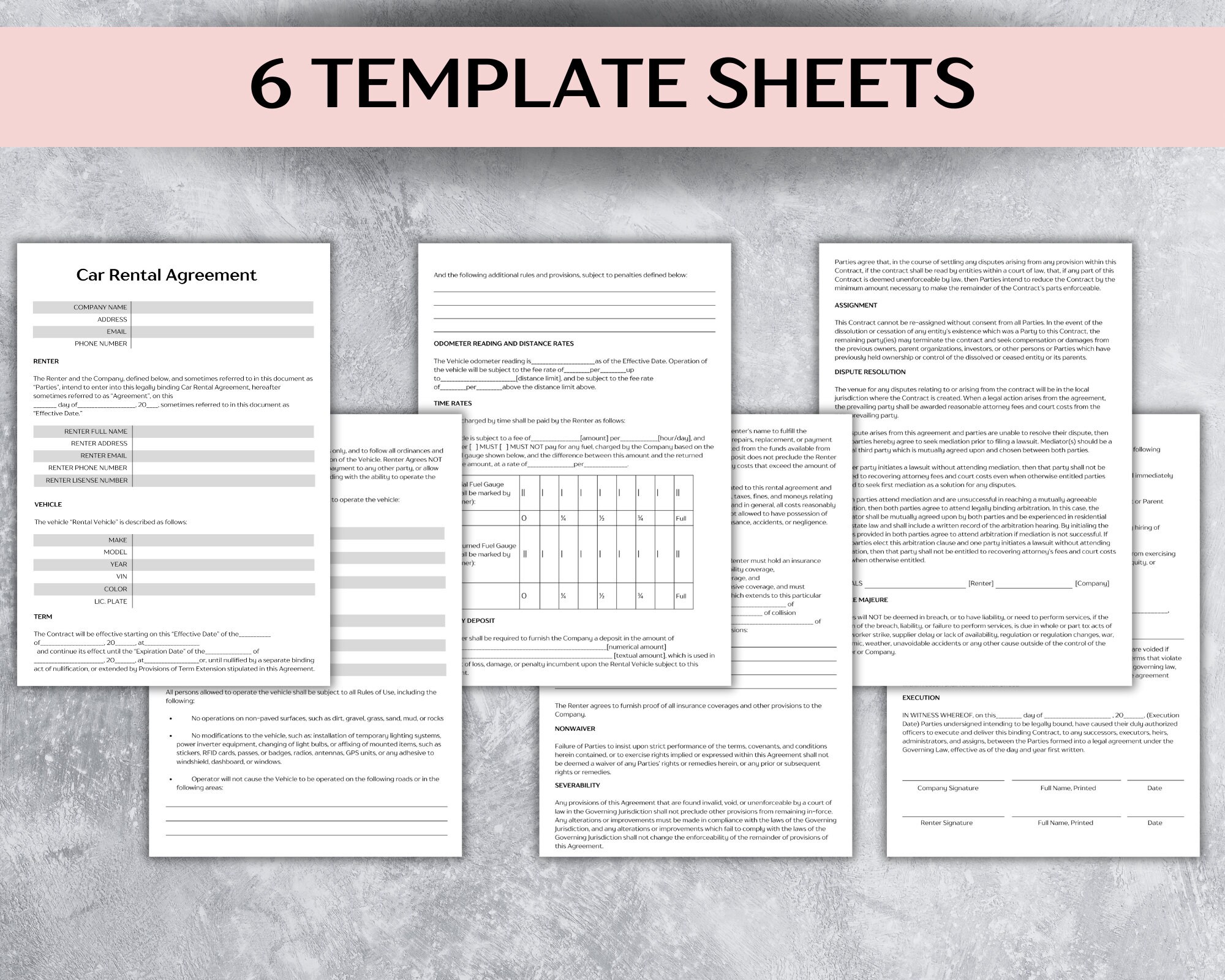 Printable Car Rental Agreement Template Car Rental Contract Editable