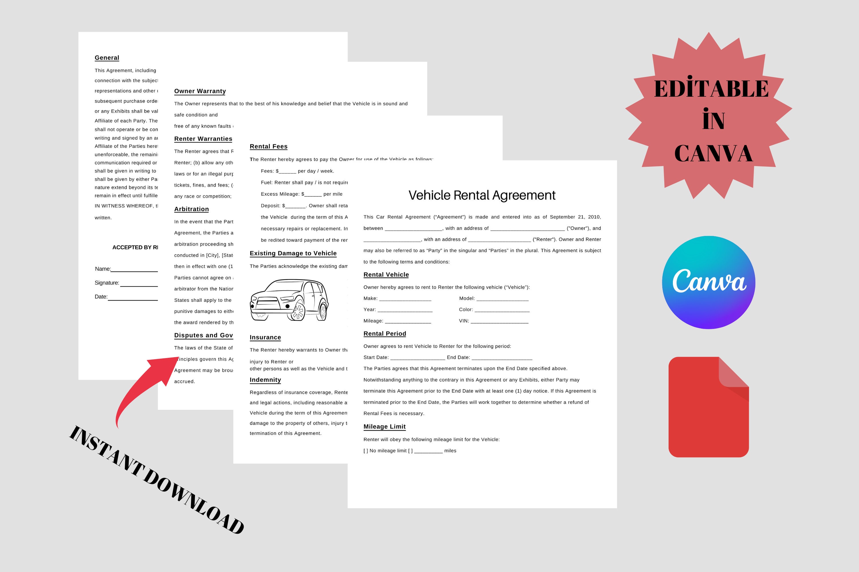 Car Rental Agreement Template Fillable Form Customize Editable Vehicle