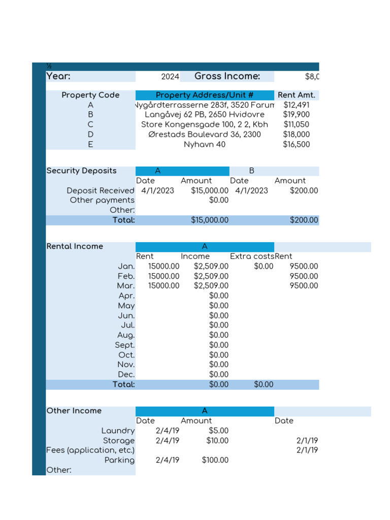 Rental Income Expense Tracker Bookkeeping Landlord Multi Unit Property
