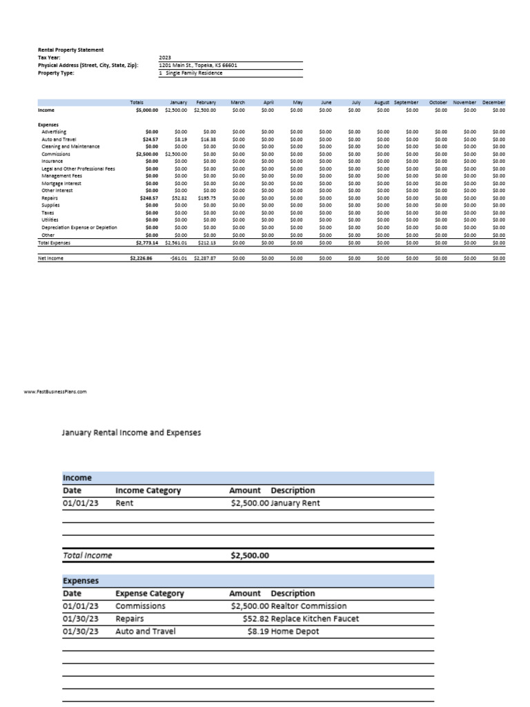 Rental Income And Expenses Template