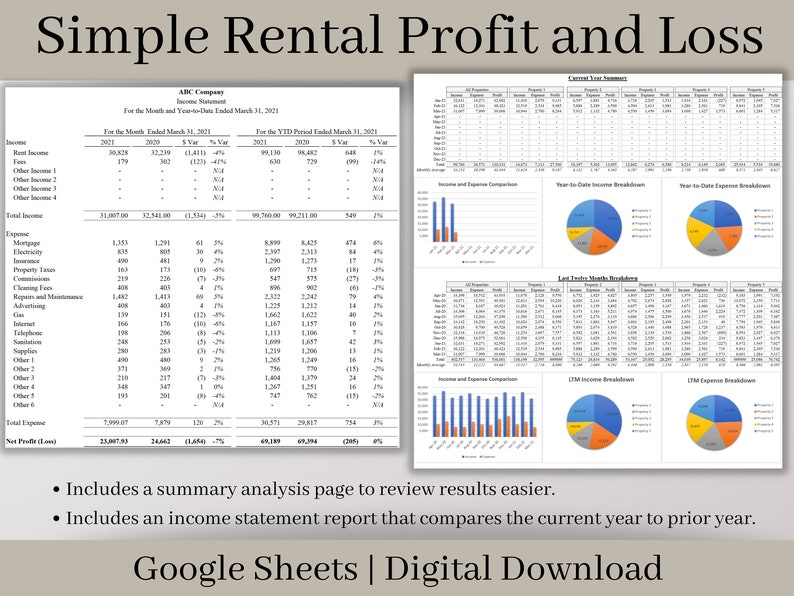 Rental Income Statement Spreadsheet Excel Landlord Template Etsy
