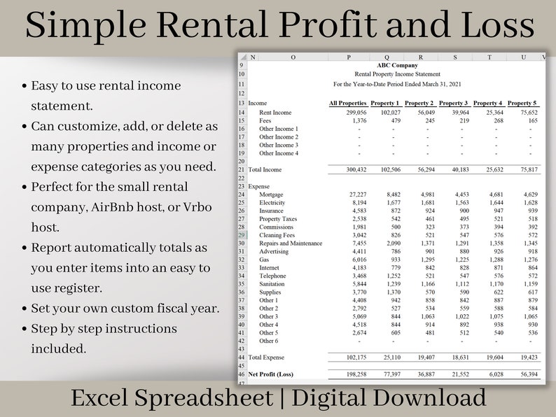 Airbnb Rental Income Statement Excel Template Spreadsheet Track Monthly