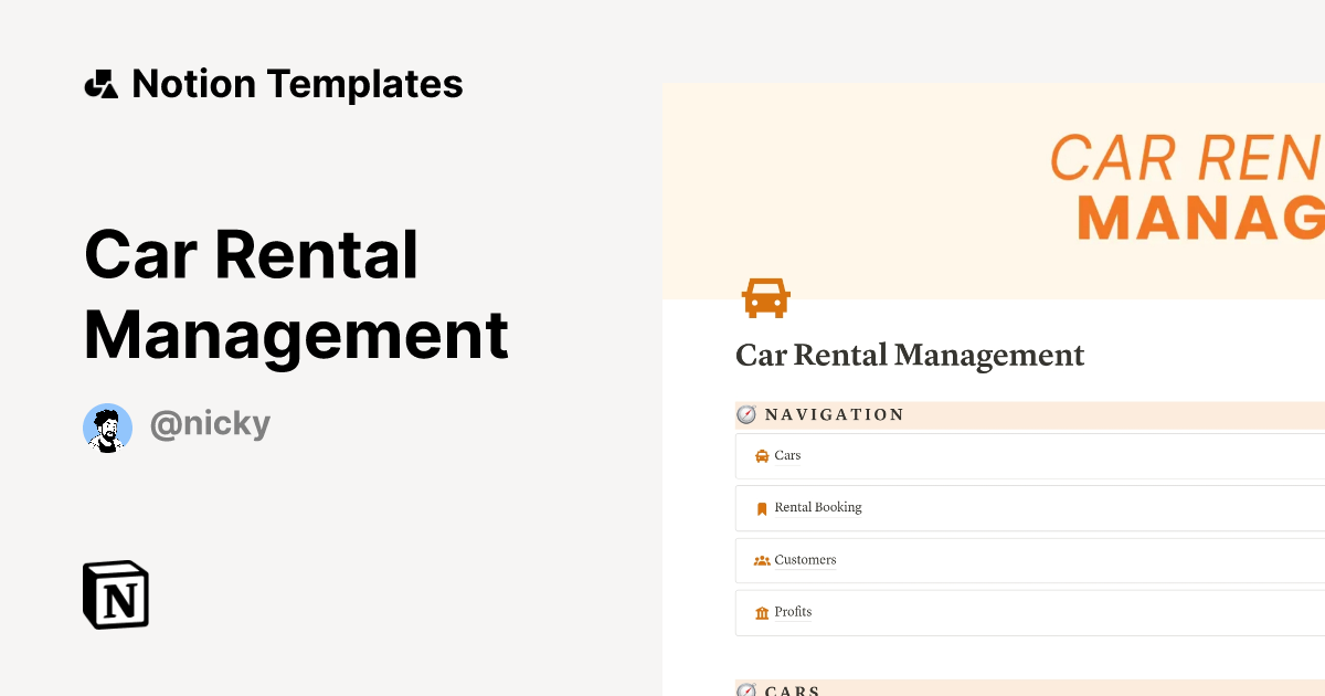 Car Rental Management Template by Nicky Notion Marketplace