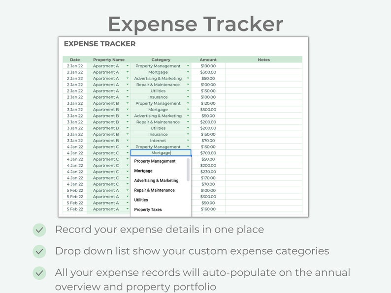 Rental Property Spreadsheet Multi property Income Expense Tracker