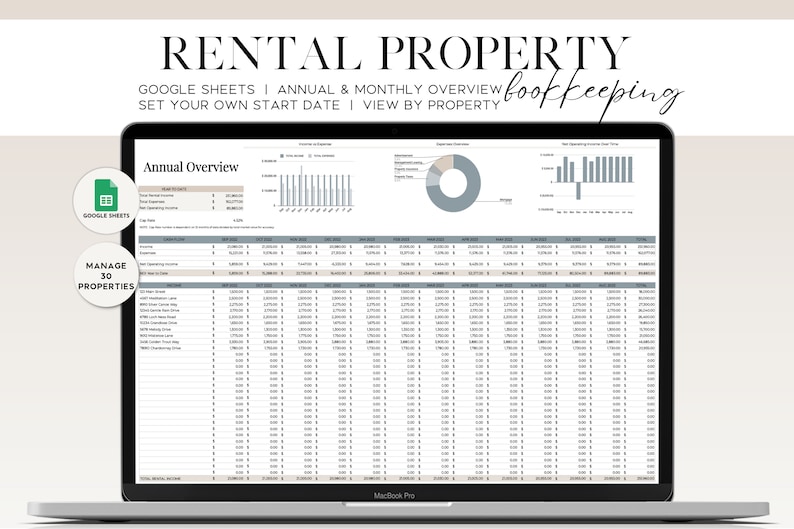 Rental Property Bookkeeping Google Sheets Template Rental Property