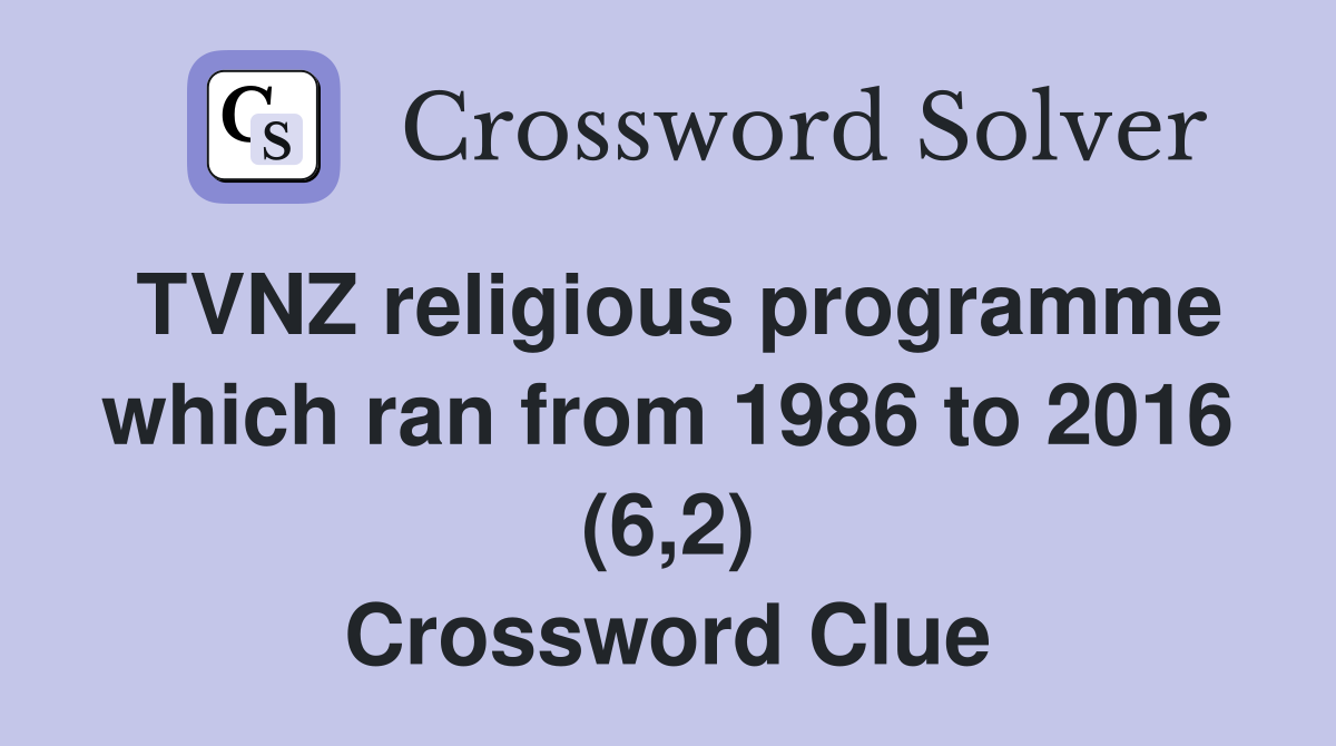 TVNZ religious programme which ran from 1986 to 2016 (6 2) Crossword