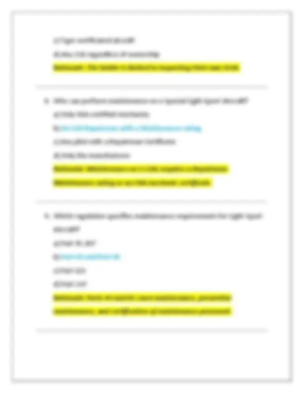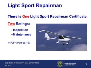 FAA Repairman Certificate Light Sport Aircraft (Lsa) Inspection