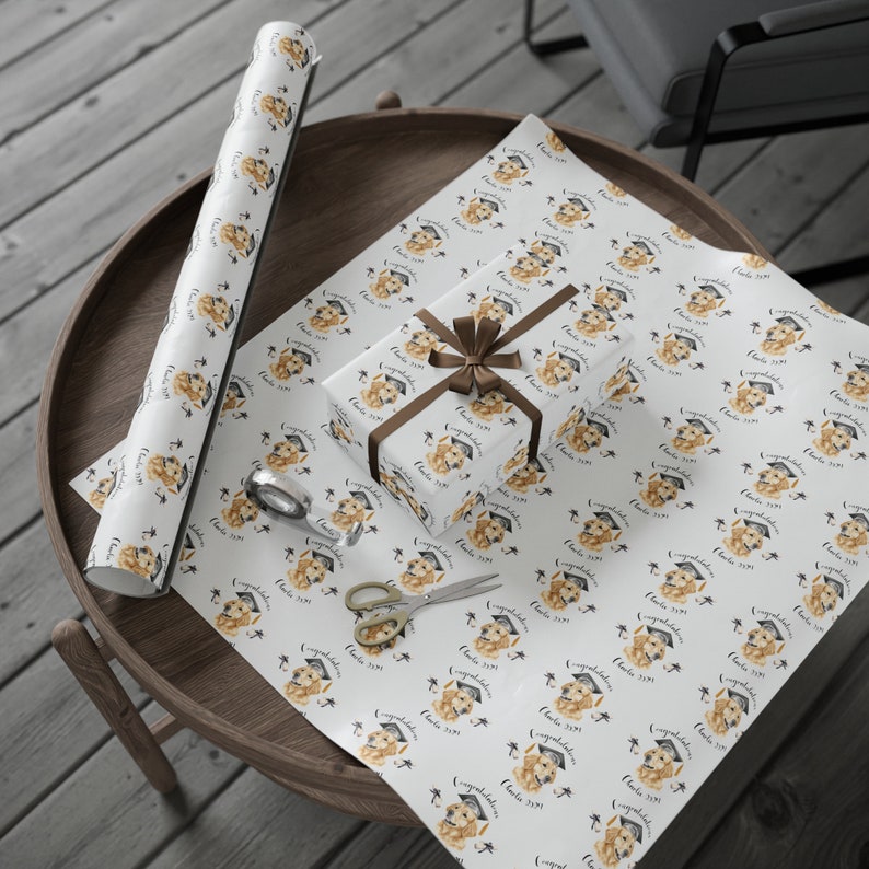Personalized Golden Retriever Graduation Wrapping Paper Custom