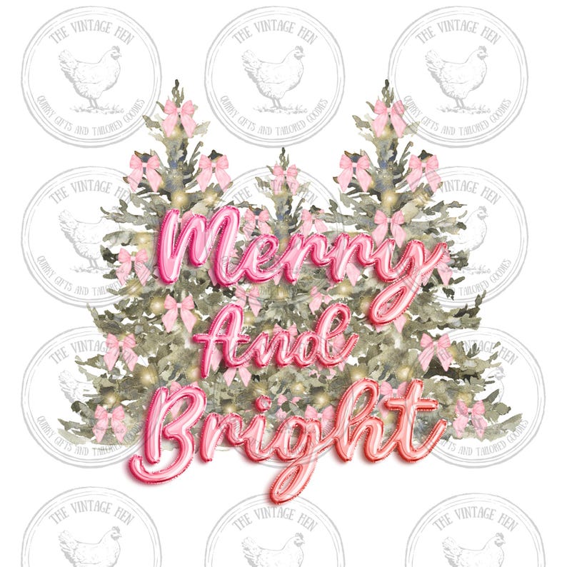 Coquette Christmas Pink Bow Merry and Bright Png Etsy