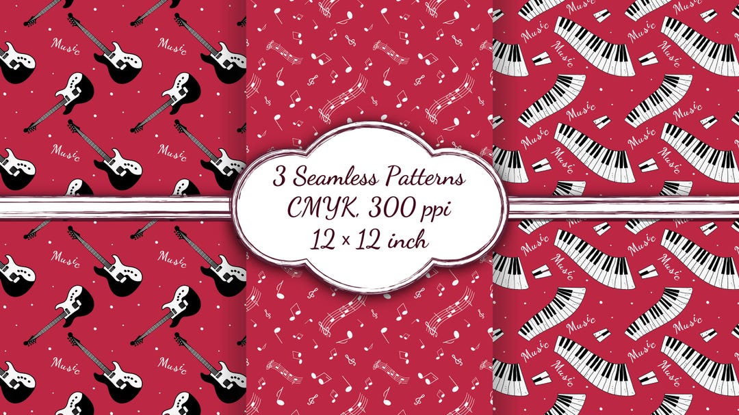 Music Seamless Pattern With Guitar Piano Notes Three Repeating Music
