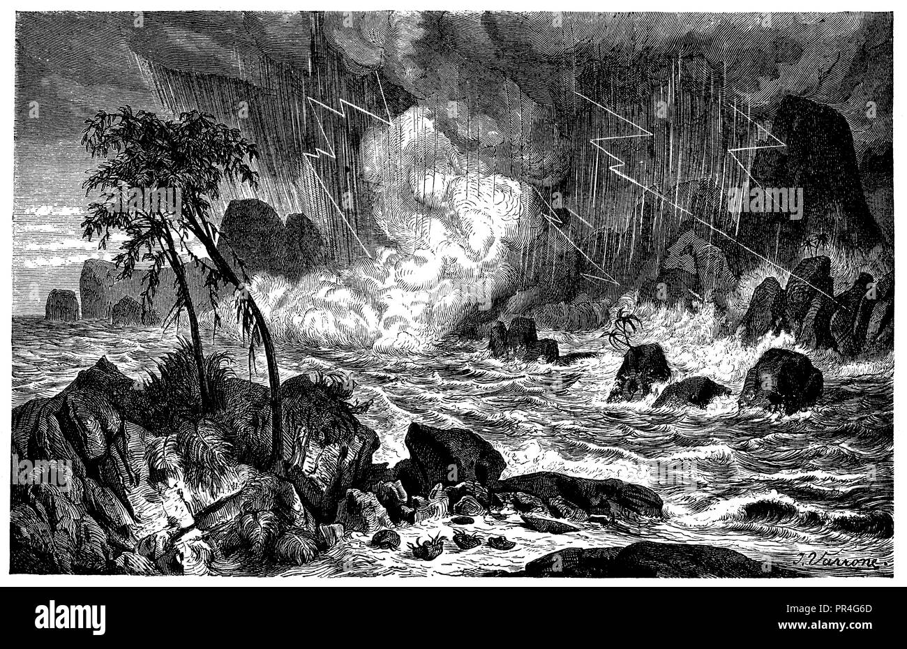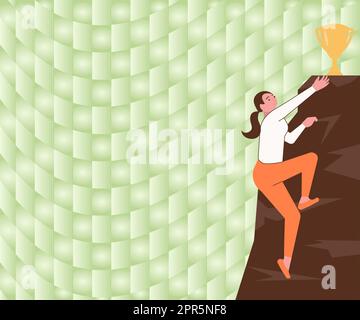 Woman Climbing Mountain Reaching Trophy Representing Success Stock
