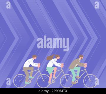 Colleagues Riding Bicycle Representing Teamwork Successful Problem