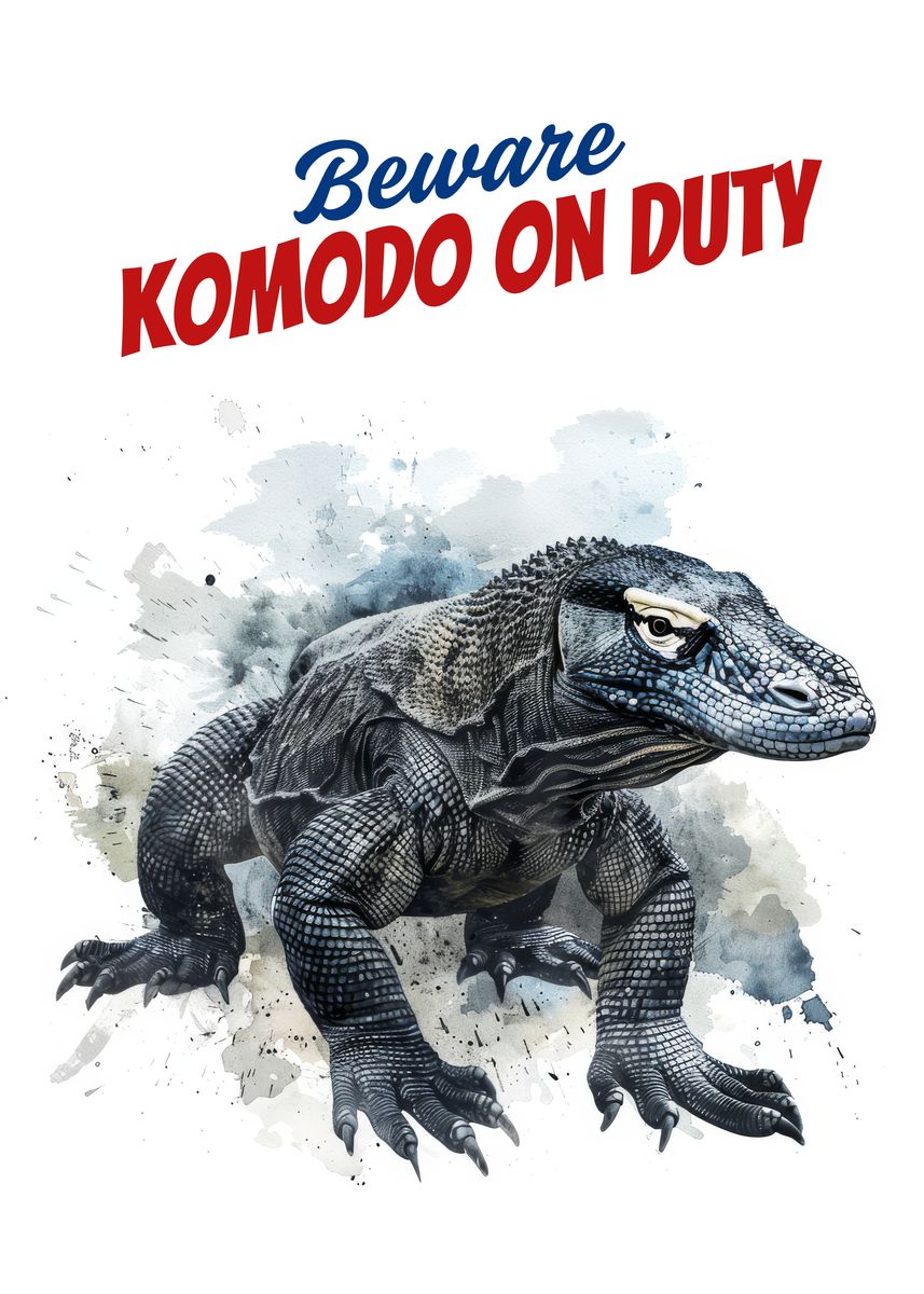 #39 Komodo Dragon Poster Beware: Komodo Dragon on Duty Bold Watercolor