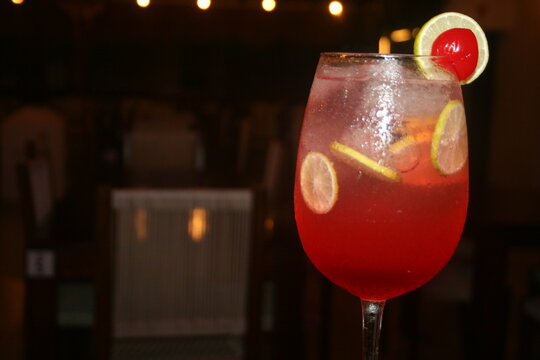 Premium Photo A Skyline Fizz cocktail in a highball glass vibrant red