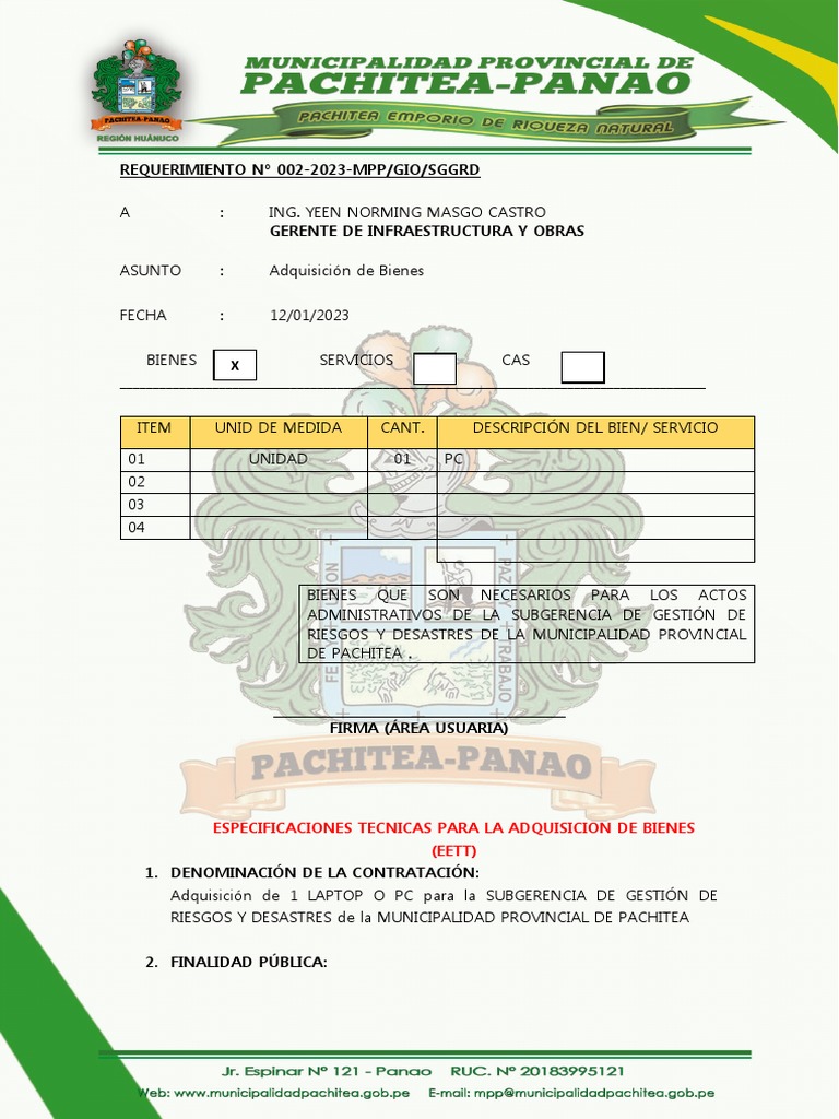 Requerimiento #002 2023 Mpp/Gio/Sggrd: Especificaciones Tecnicas para