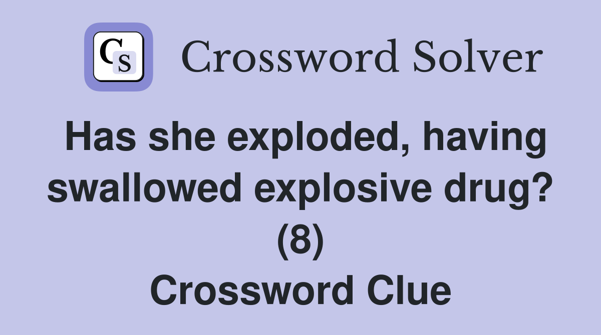 Has she exploded having swallowed explosive drug? (8) Crossword Clue
