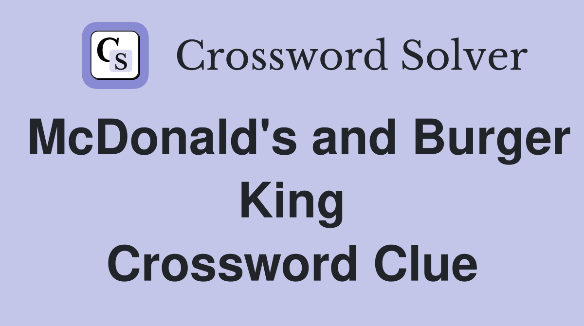 McDonald #39 s and Burger King Crossword Clue Answers Crossword Solver